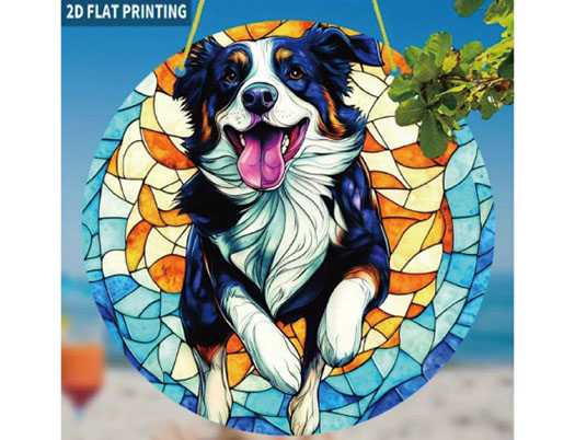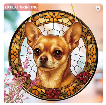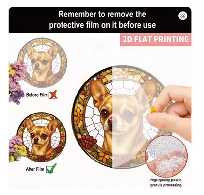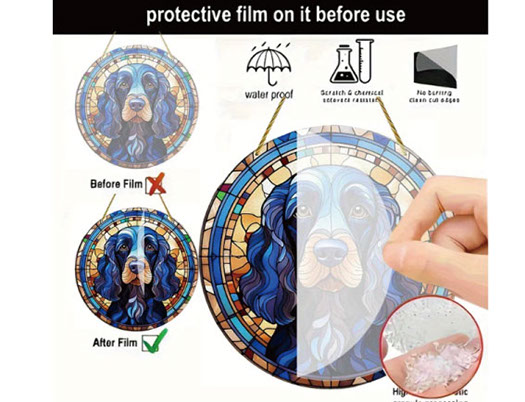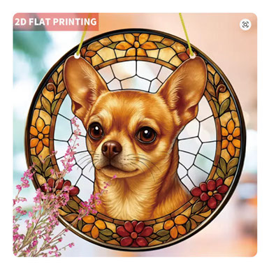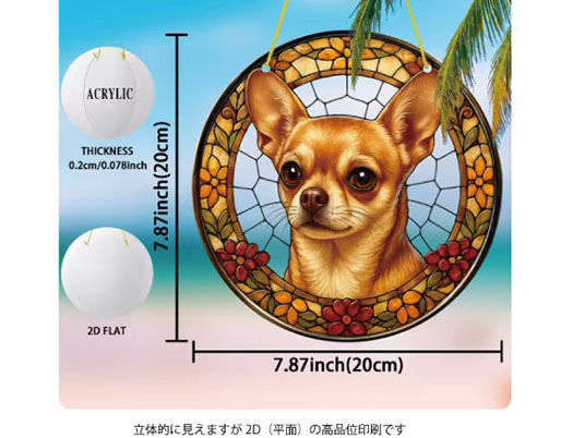 サンキャッチャーはアクリル板に高品位プリントしていて、背面からの光を透過してステンドグラスのような見栄えです。