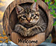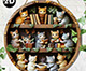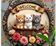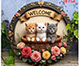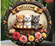 ヴィンテージ動物円形ウェルカムサイン猫フクロウカメホームツリーデコラアイテム動物愛好家背景壁アクセサリーたくさんの子ネコ