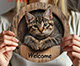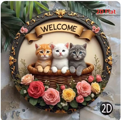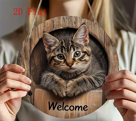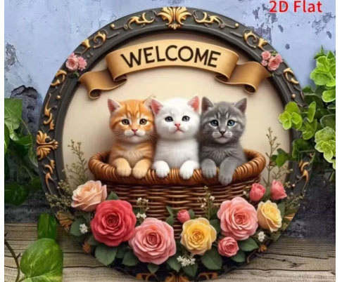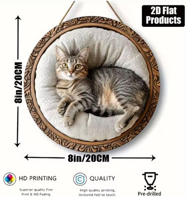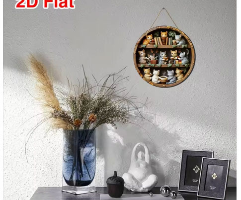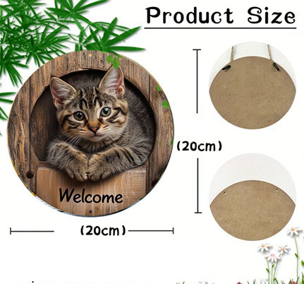 ヴィンテージ動物円形ウェルカムサイン猫フクロウカメホームツリーデコラアイテム動物愛好家背景壁アクセサリー三毛猫 みけ